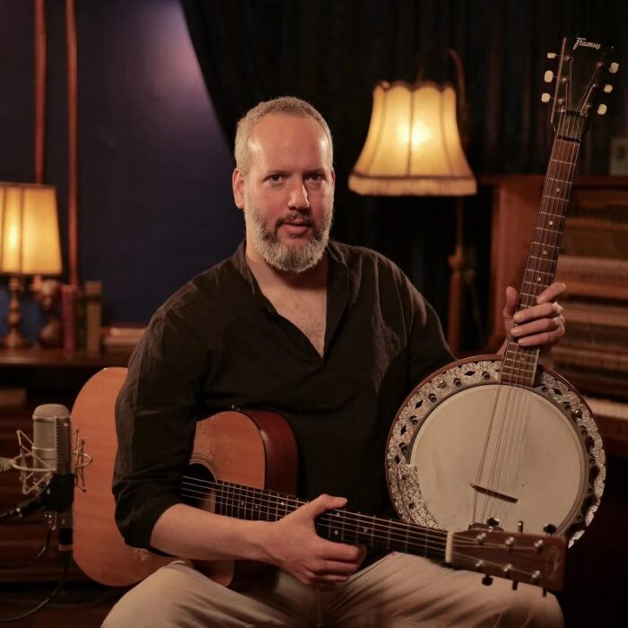 He has released more than ten albums under his name. In his solo albums, as well as in live performances, he uses acoustic guitar, bowed banjo, and voice.