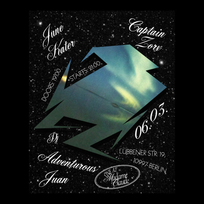 On stage, this vision expands with the help of a live band: Mark Gritsenko (Siamese Youth, Marakesh) on bass, and Kian Kiesling (Lolita Terrorist Sounds) on drums.